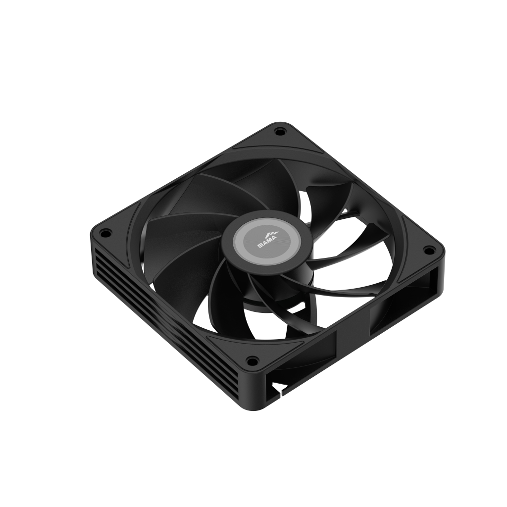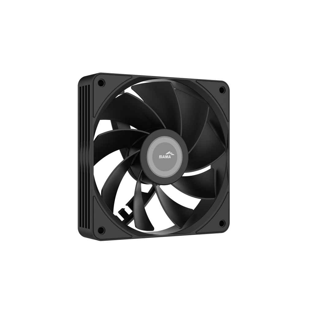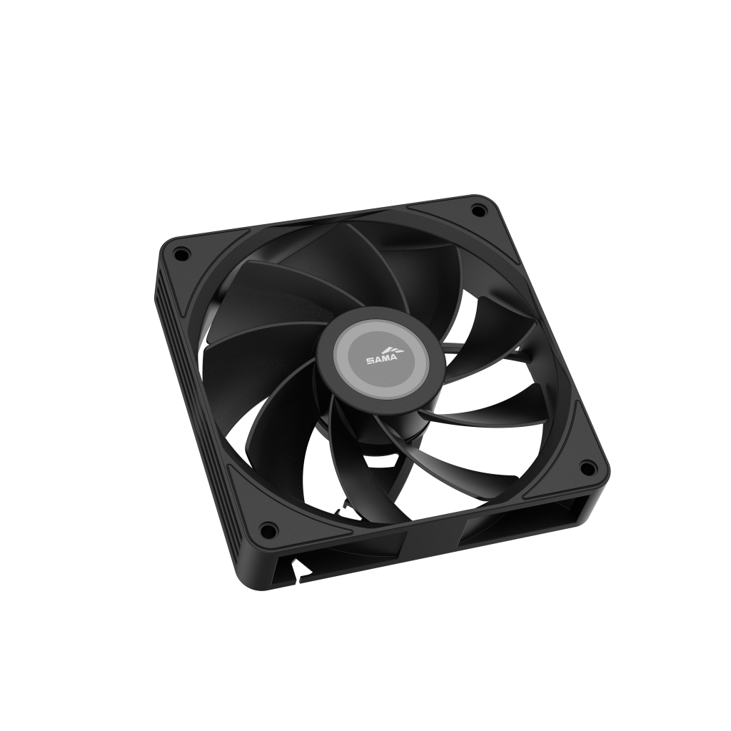 Introducing the SAMA A40: a sleek all-black cooler with a brushed metal top, direct-touch heatpipes, and a 120mm guide ring fan for efficient, quiet cooling in a compact design.
